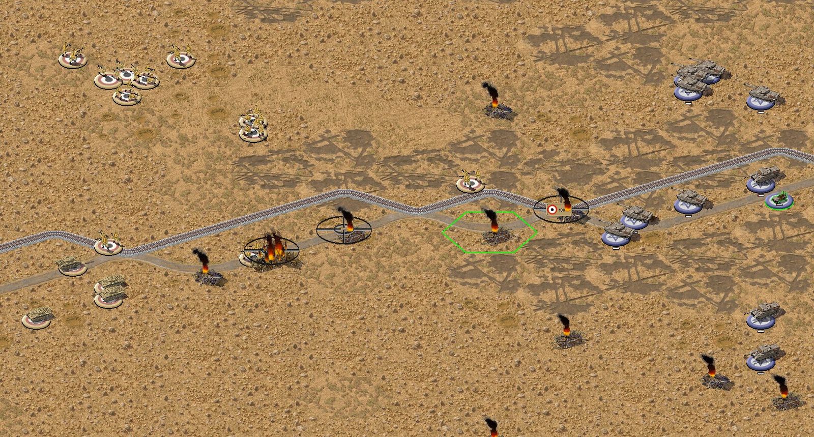 Les améliorations graphiques de la carte et des unités ne sont pas en reste, plusieurs types de terrains en 3D et en 2D ont été retouchés, idem pour les unités irakiennes et anglaises en 3D. J’ai relancé plusieurs scénarios, je ne sais pas si c’est du à mon enthousiasme concernant la gestion des vues mais il m’a semblé que la carte était plus jolie. En même temps on partait de relativement loin, mais pour un jeu de ce type l’ensemble commence à tenir un peu mieux la route.