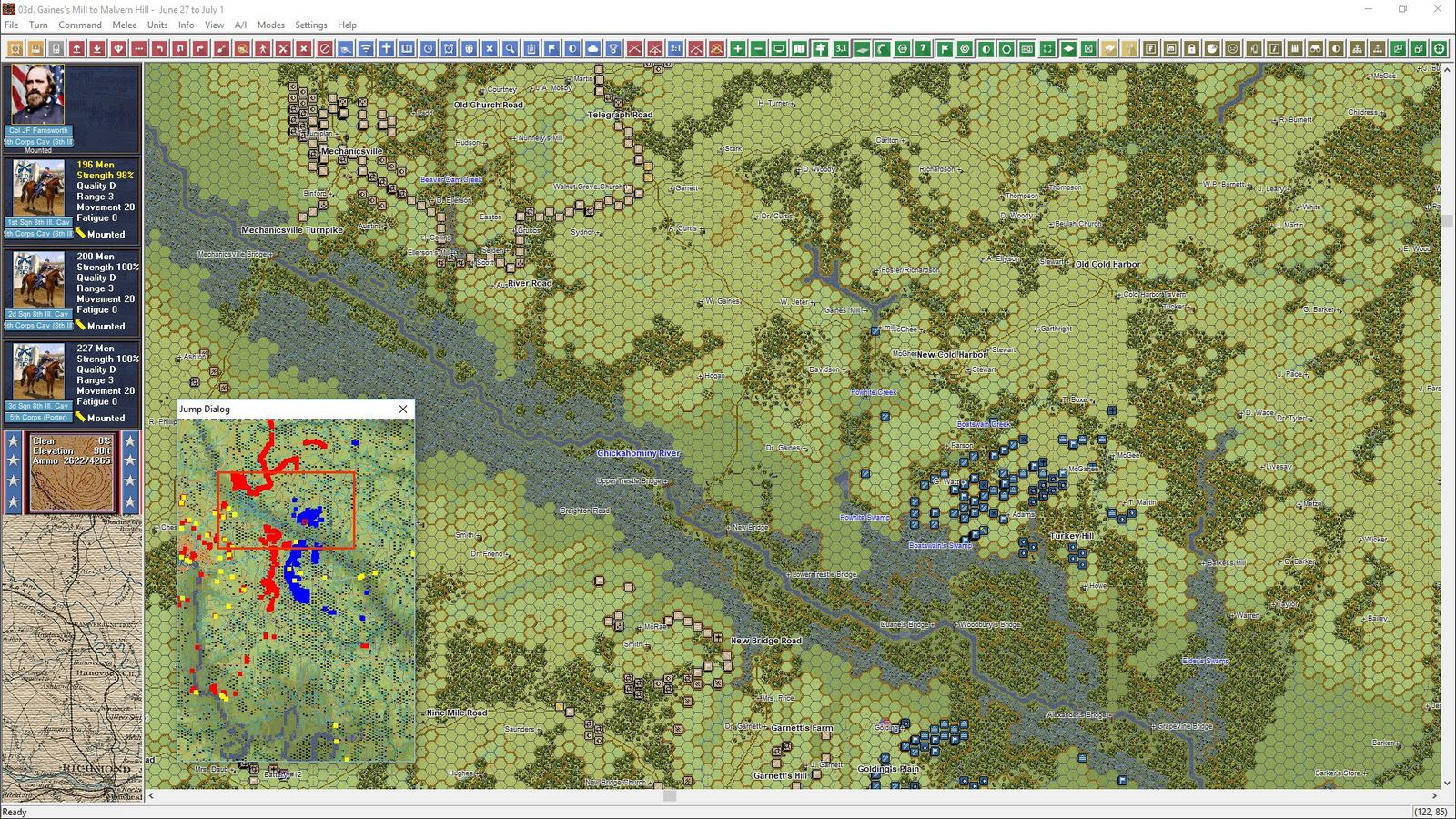 Beyond thanking Frank and the Old Banshee team, Berto our resident (overworked and part-time) programmer has taken a lot of what he has learned updating the Panzer Battles system and applied it to the Civil War Battles set. Rich Walker who authored many of the previous releases along with John Ferry have done all the tough hack work to rewrite order of battle and verify the titles scenarios and overall infrastructure. A lot of the current updates required some very deep reviews of the existing data and these two gentlemen have been tireless in getting through mountains of work.