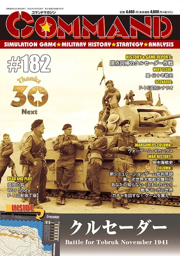 Le numéro 182 de ce magazine japonais est disponible depuis plusieurs mois, en plus des articles habituels, il propose Battle for Tobruk, wargame initialement paru chez SPI en 1976 dans Fourth Battles in North Africa.