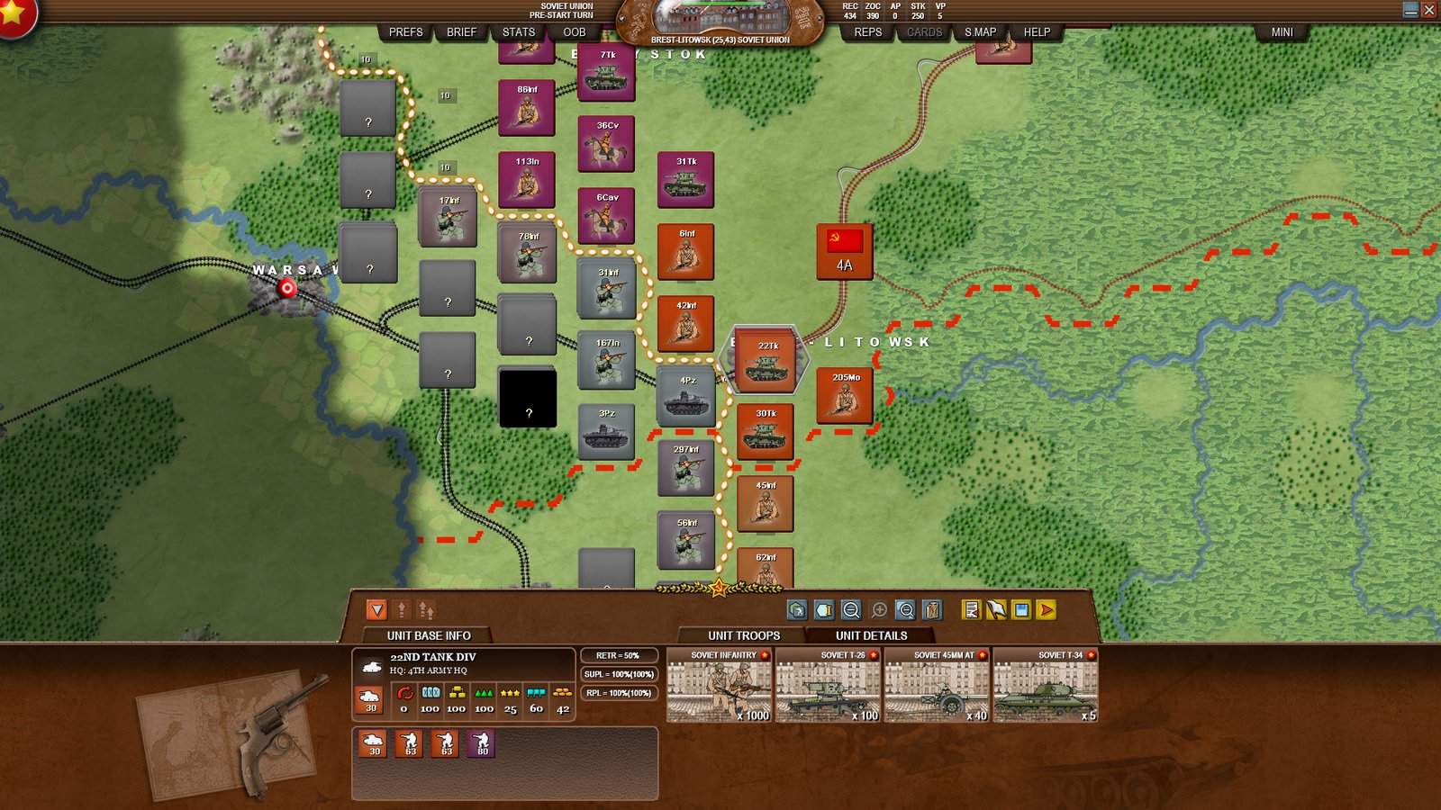 • Soviet Retreat % locked at 50% (normal) for first active German turn only in order to prevent a Soviet Player exploit (changing all to 100%)