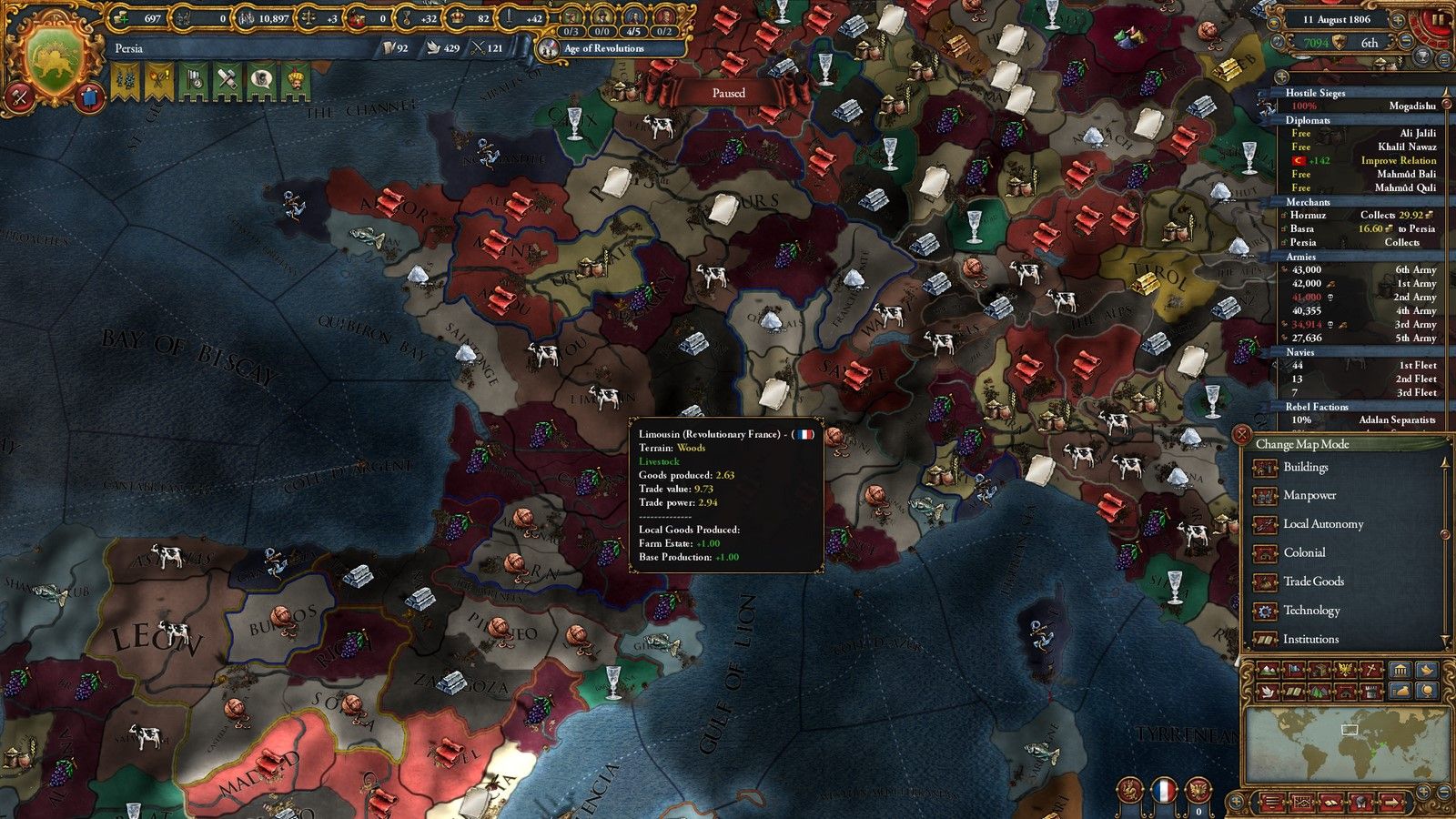 Sont assez nombreuses pour qu’on y revienne, mine de rien. La première, je l’évoquais dans le test de Cradle of Civilization, concerne la carte du Moyen-Orient, qui a été revue pour lui donner plus de profondeur. Concrètement, des provinces ont été rajoutées et d’autres modifiées. On n’y prêtera peut-être pas attention, mais cela témoigne d’un suivi important par les développeurs.