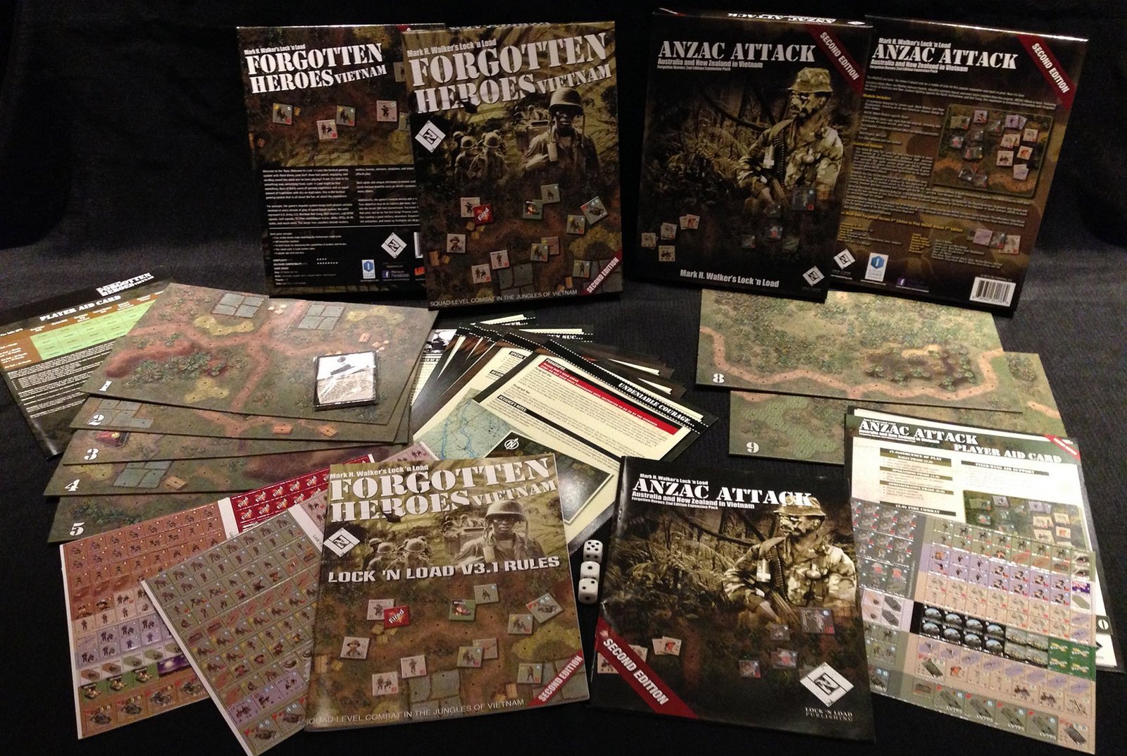Les jeux sur la guerre du Vietnam ne sont pas légions et les amateurs de cette période seront probablement heureux de voir revenir ces dernières semaines dans les bacs Forgotten Heroes – Vietnam et son extension ANZAC Attack. Forgotten Heroes est un wargame tactique facile d’accès et jouable aussi en solitaire, qui propose 5 plateaux, plus de 300 pions et 13 scénarios différents. Le tout enrobé par la dernière version des règles et de nouvelles illustrations. ANZAC Attack 2nd Ed. rajoutant pour sa part 2 cartes, 12 scénarios ainsi que quelques mécanismes supplémentaires.