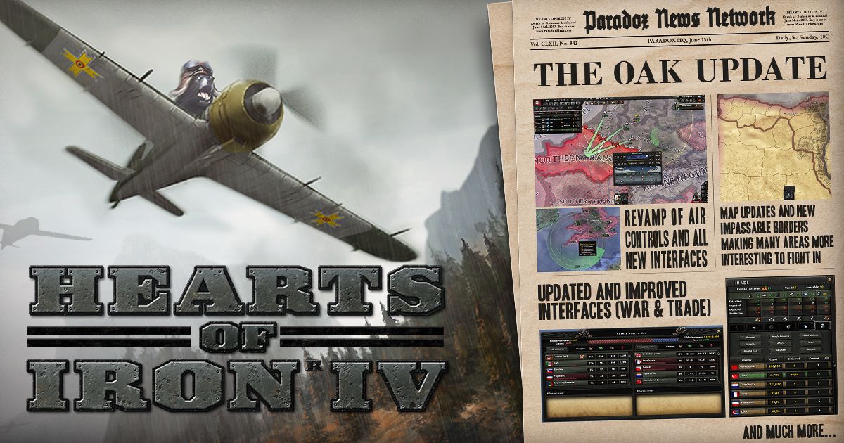 Alors que l’extension Death or Disonor est disponible pour Hearts of iron IV depuis le 14 juin, celle-ci s’accompagne d’un important patch 1.4. De plus, celui-ci a été renforcé depuis mardi par la version 1.4.1. Les deux portent le nom de « Oak [chêne en français] update » et proposent gratuitement d’importantes nouveautés et corrections dont nous allons parler, captures d’écran à l’appui.