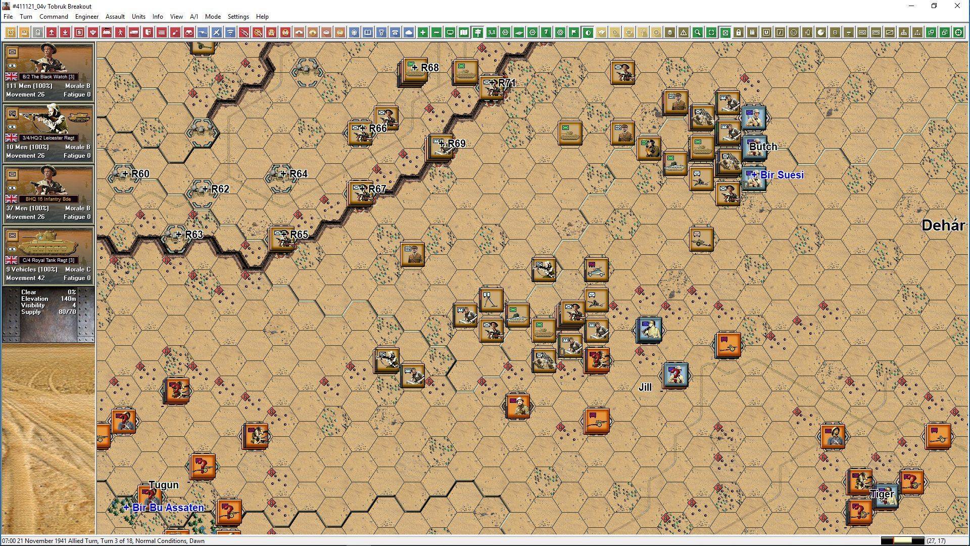 Battles of North Africa 1941 includes 115 playable scenarios, 24 reference scenarios and a further 3 variable scenarios ranging from 6 turns to 90 turns in length. Representative operations from December 1940 through to December 1941 are included with a good mix of small (battalion/regiment), medium (division) and large (corps) engagements.