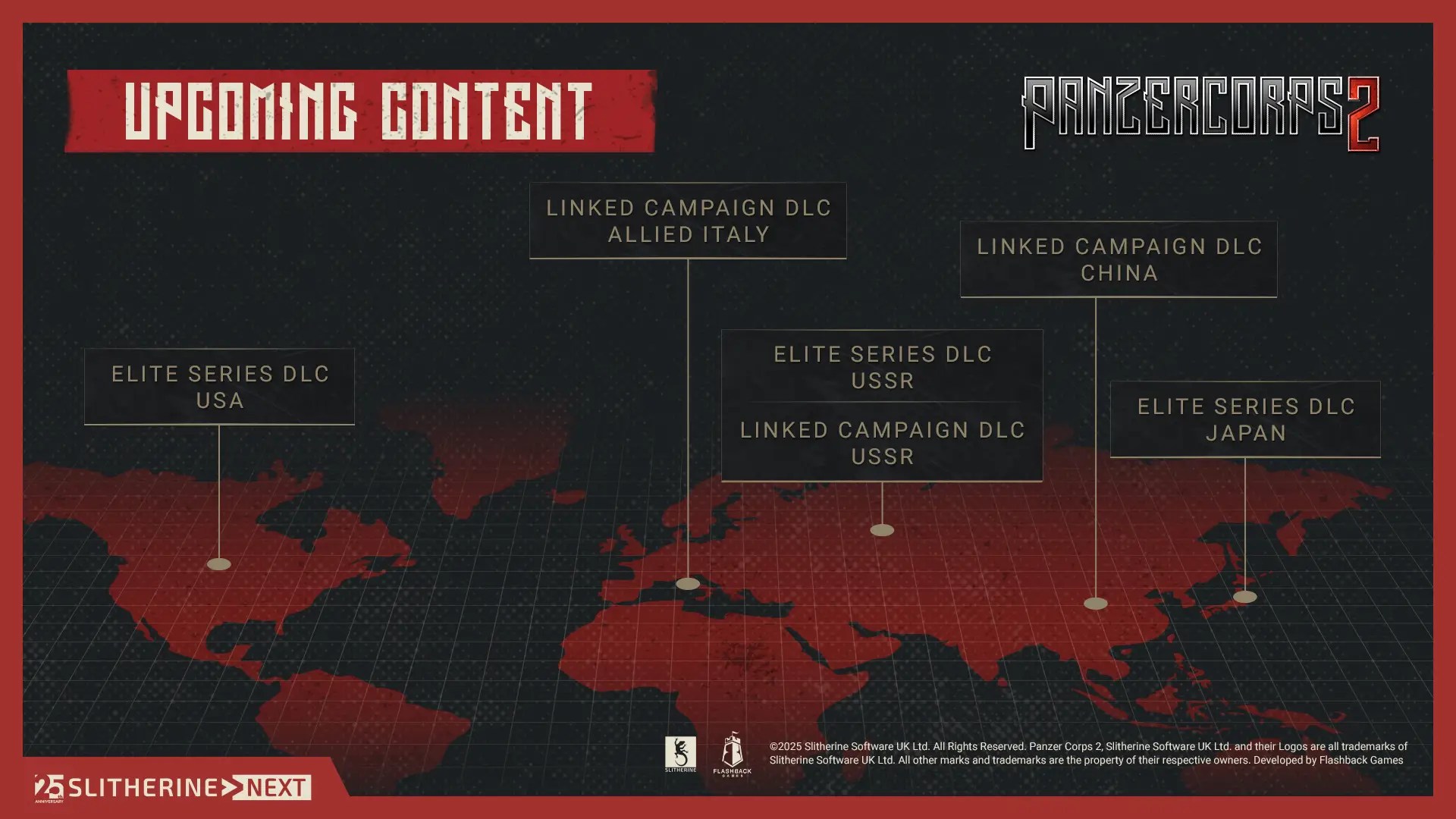 En parallèle de son 25ème anniversaire, Slitherine a aussi organisé un autre événement en ligne sur le thème de Panzer Corps. Au programme, un retour sur le jeu depuis la sortie du premier volet en 2010, deux scénarios bonus, la confirmation de la date de sortie du prochain DLC Frontlines – Westwall, l’annonce d’un nouveau tournoi, des promotion sur la série, et surtout une utile feuille de route qui donne donc les très grandes lignes du futur du jeu.