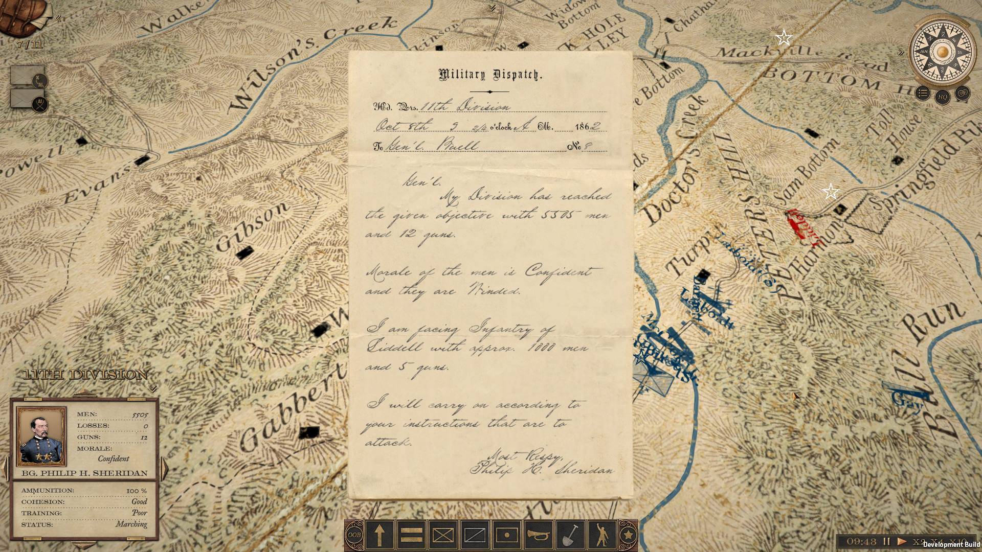 We’ve also added “random map markers” as well. These markers manage a number of sets of non-historic battlefields. These battlefields will also be manually created to allow the same level of detail as the historic maps. The sets are compiled according to terrain in different parts of the United States, so you would not get same randomly chosen map in Texas and Vermont. There is also an upside to not having procedural random maps: the level of detail in the maps and the game-play aspect. Even maps generated randomly for simple hex based terrain engines (Steel Panthers is a prime example) tend to produce quite good maps, but also very bad ones. And while getting your campaign randomly produce you an impossible terrain to fight in would be fairly realistic, it would certainly kill some of the fun – especially if this was the battle that would decide the fate of your nation.