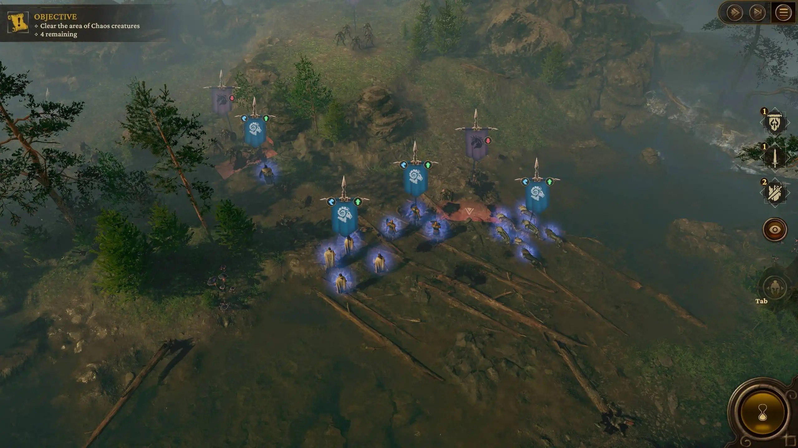 Dans la version bêta mise à notre disposition, je n’ai pu essayer que les quatre premiers scénarios de la campagne, donc jouer essentiellement avec les premières unités, assez basiques, à disposition au début. J’ai pu enrôler plusieurs héros, qui sont variés et très puissants au combat quand on les utilise bien, mais n’ai que très peu pu développer leurs compétences et bonus spéciaux.