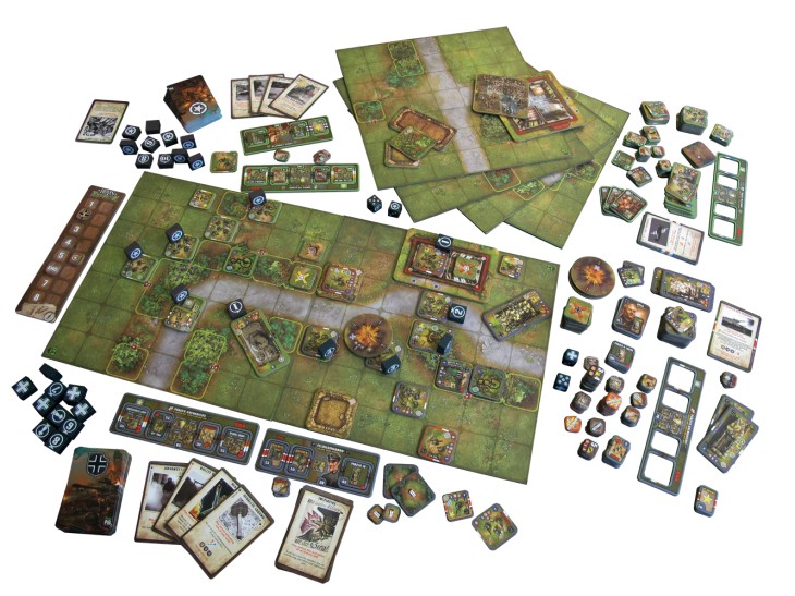 Tandis qu’une adaptation en jeu vidéo est donc en chantier actuellement chez Matrix, revenons sur ce joli jeu de plateau qui débarque depuis peu sur les étalages de toutes les bonnes boutiques (par exemple chez Hexasim). Permettant ainsi à tous ceux n’ayant pas pu participer à la campagne Kickstarter ayant eu lieu au printemps 2013 (ou n’ayant pu obtenir ces dernières semaines une version en précommande) de pouvoir enfin se procurer Heroes of Normandie et ses premières extensions.