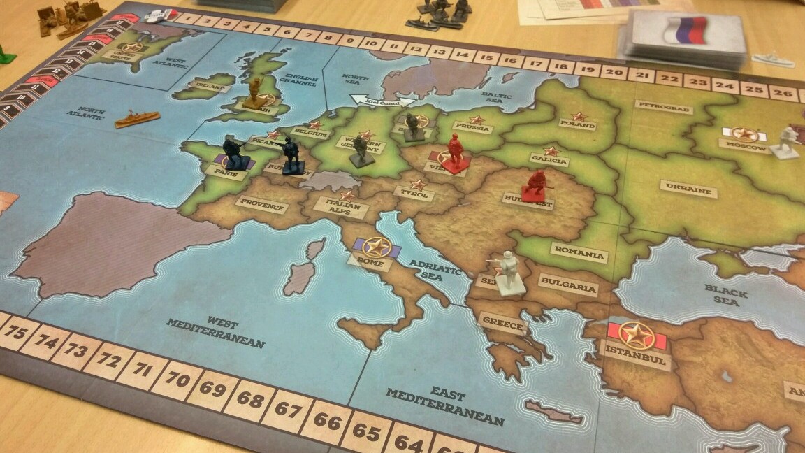 En bref. Financée avec succès via Kickstarter en octobre dernier, cette déclinaison sur le thème de 14-18 du très sympathique Quartermaster General est en train d’arriver un peu partout de notre coté de l’Atlantique. Et permet donc comme pour le précédent volet de la série pour 2 à 5 joueurs de simuler la Der des der en deux bonnes heures. Comme une bonne nouvelle n’arrive jamais seule, sachez aussi qu’une version française sera réalisée a priori l’année prochaine par Asyncron.