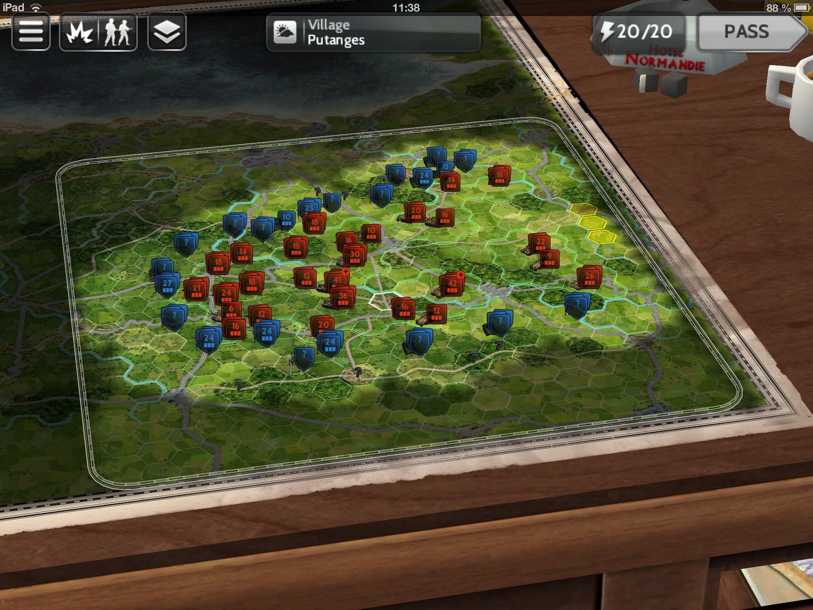 Voici une douzaine de captures d’écrans qui illustrent trois différents scénarios de Normandie 1944 (« La poche de falaise », « L’attaque de Patton (opération Cobra) » et « Objectif Caen »), le prochain premier volet de la nouvelle série Wars and Battles dont le développement prend de mieux en mieux forme. Et qui devrait débarquer dans un premier temps sur iPad dans le courant du mois de novembre. Une version PC étant bien sûr toujours prévue dans les mois à venir. En attendant d’en savoir plus sur ce prometteur wargame, voyez si nécessaire le site officiel ainsi que la page Facebook du jeu.