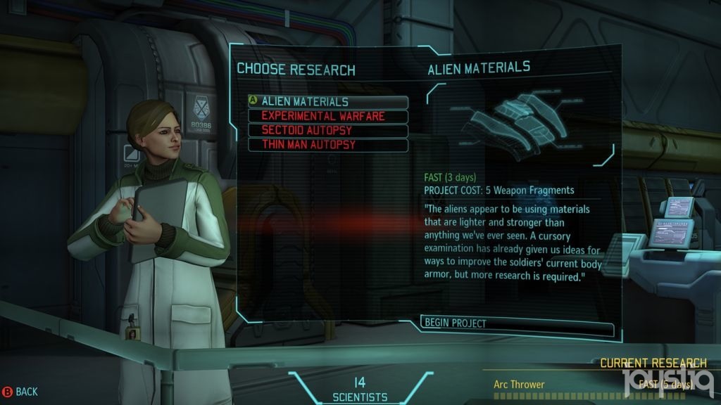 On aura donc toujours la possibilité de gérer une flotte de chasseurs (au travers du géoscape, qu’on a encore peu vu pour le moment). Tant mieux. Joystiq explique qu’il y aura globalement deux types de missions, les « campaigns missions », et les « UFO missions ». Les premières, où il s’agira entre autre de protéger des pays, permettront de gagner comme récompenses des fonds et du personnel, tandis que les secondes permettront de récupérer des trésors de technologie alien (et seront d’ailleurs l’un des très rares moyens de mettre la main dessus). On aperçoit dans le screenshot ci-dessus des fragments d’armes (weapon fragments), débris de matériel aliens que l’on pourra a priori récupérer après les combats.